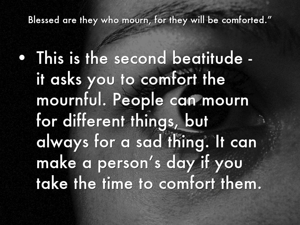 • This is the second beatitude - it asks you to comfort the mournful. People can mourn for different things, but always for a sad thing. It can make a person’s day if you take the time to comfort them.