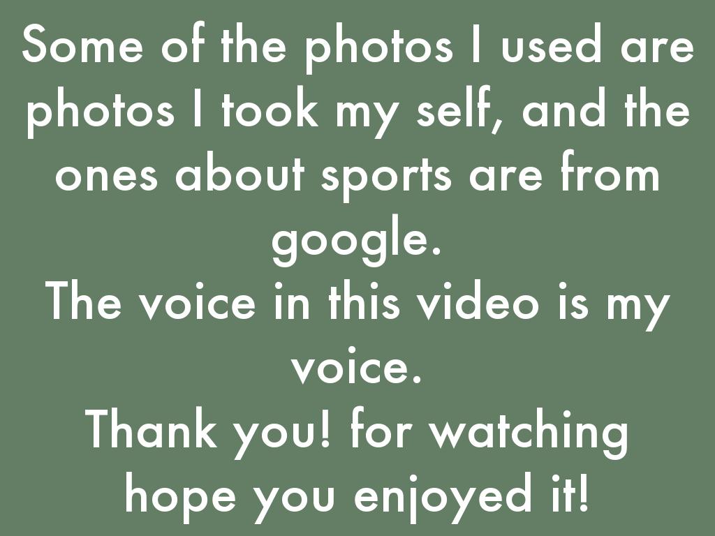 Some of the photos I used are photos I took my self, and the ones about sports are from google.