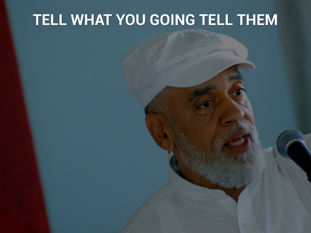 We turn our slides into slideuments. We pack them with tiny text and read them out loud, word for word.