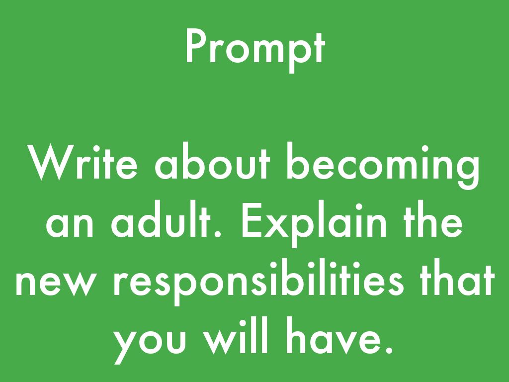 Write about becoming an adult. Explain the new responsibilities that you will have.