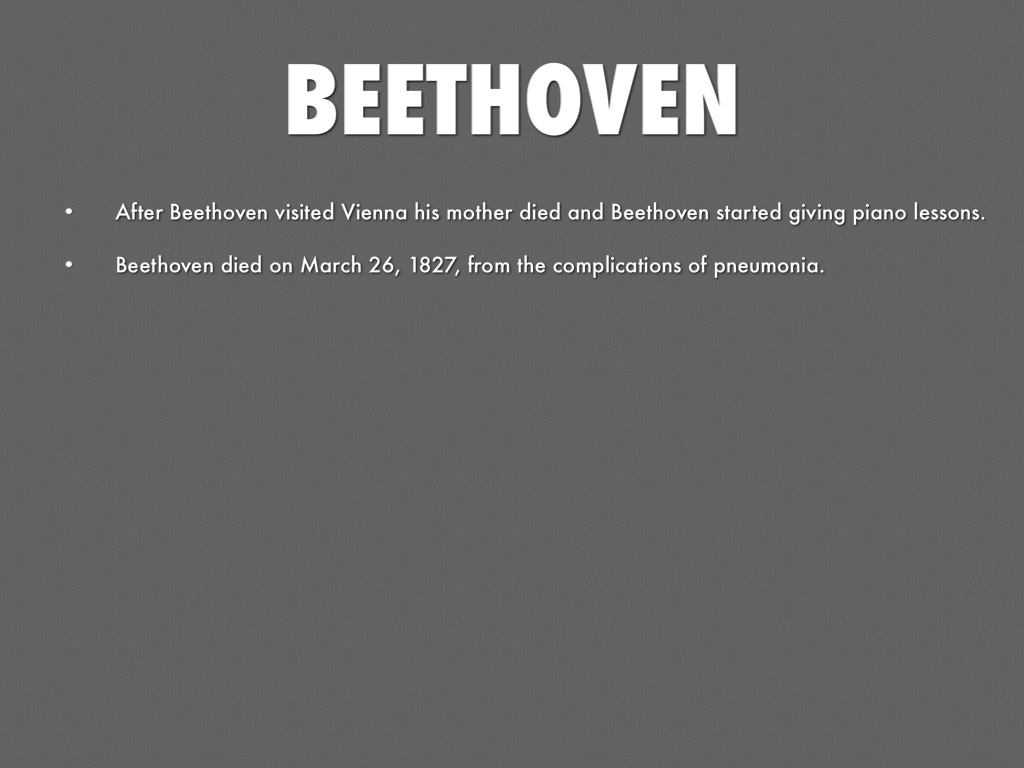 After Beethoven visited Vienna his mother died and Beethoven started giving piano lessons.