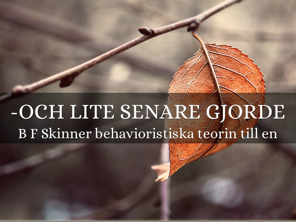 Watson ( 1878-1958 USA) är i hop med Skinner förhandsfigurerna inom kognitiv beteendeterapi.