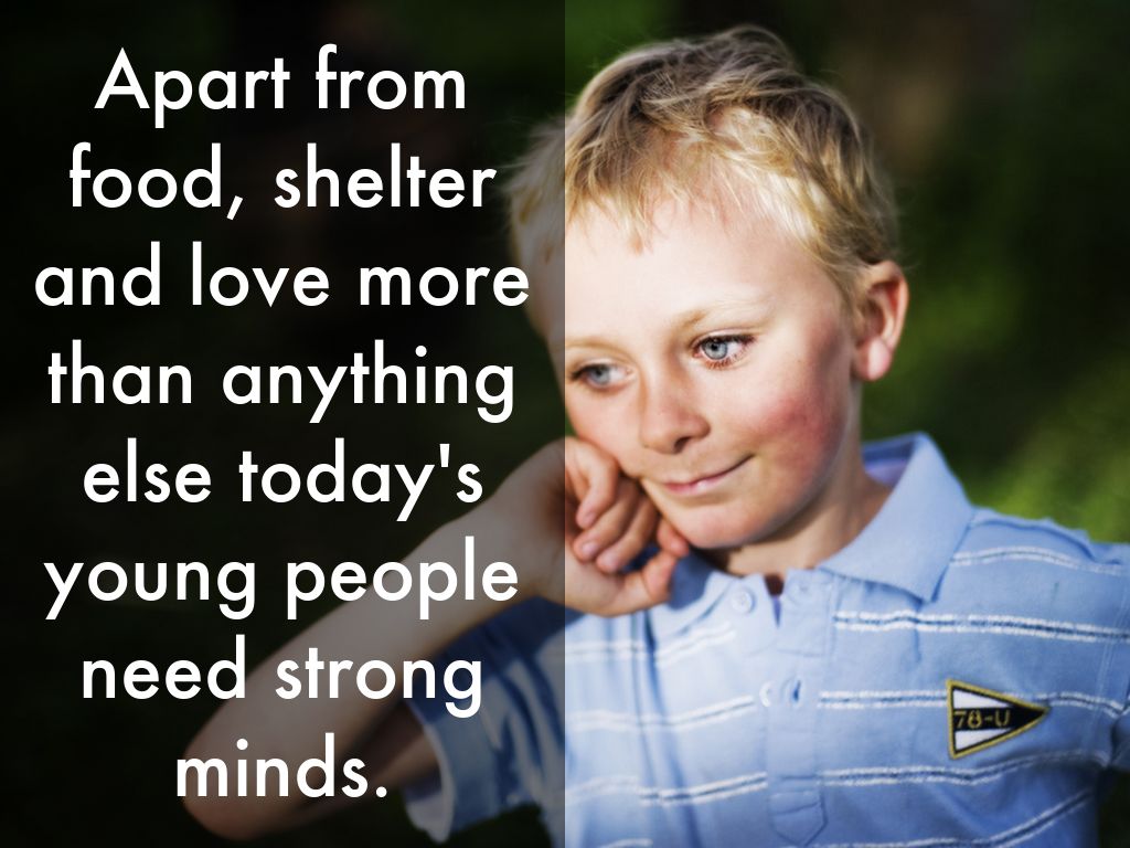 Apart from food, shelter and love more than anything else today's young people need strong minds.