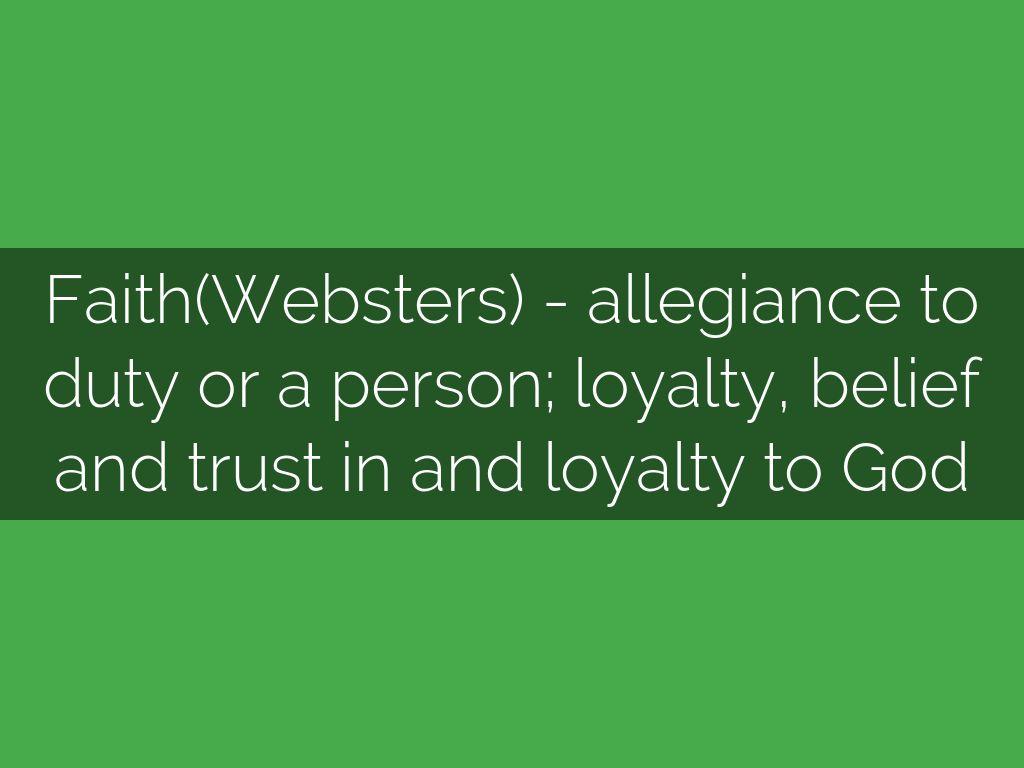 Faith(Websters) - allegiance to duty or a person; loyalty, belief and trust in and loyalty to God