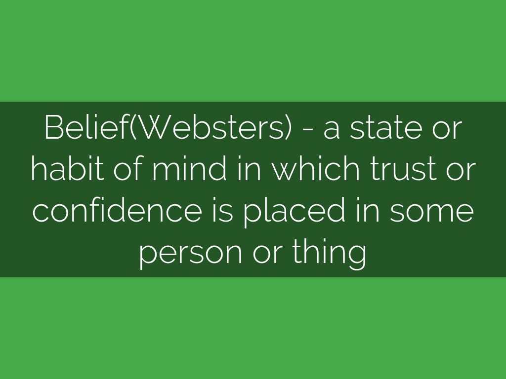 Belief(Websters) - a state or habit of mind in which trust or confidence is placed in some person or thing