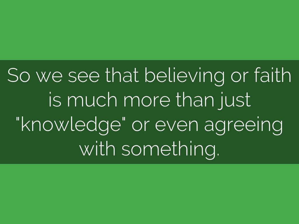 So we see that believing or faith is much more than just "knowledge" or even agreeing with something.