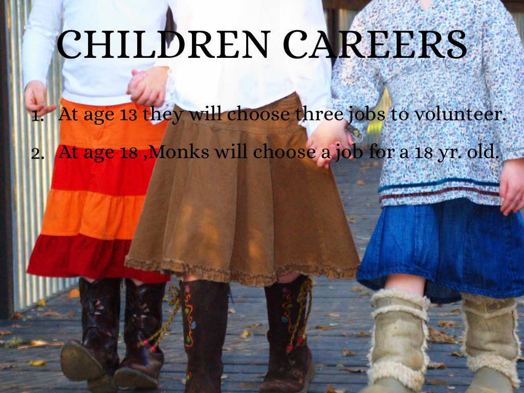 At age 18 ,Monks will choose a job for a 18 yr. old.
