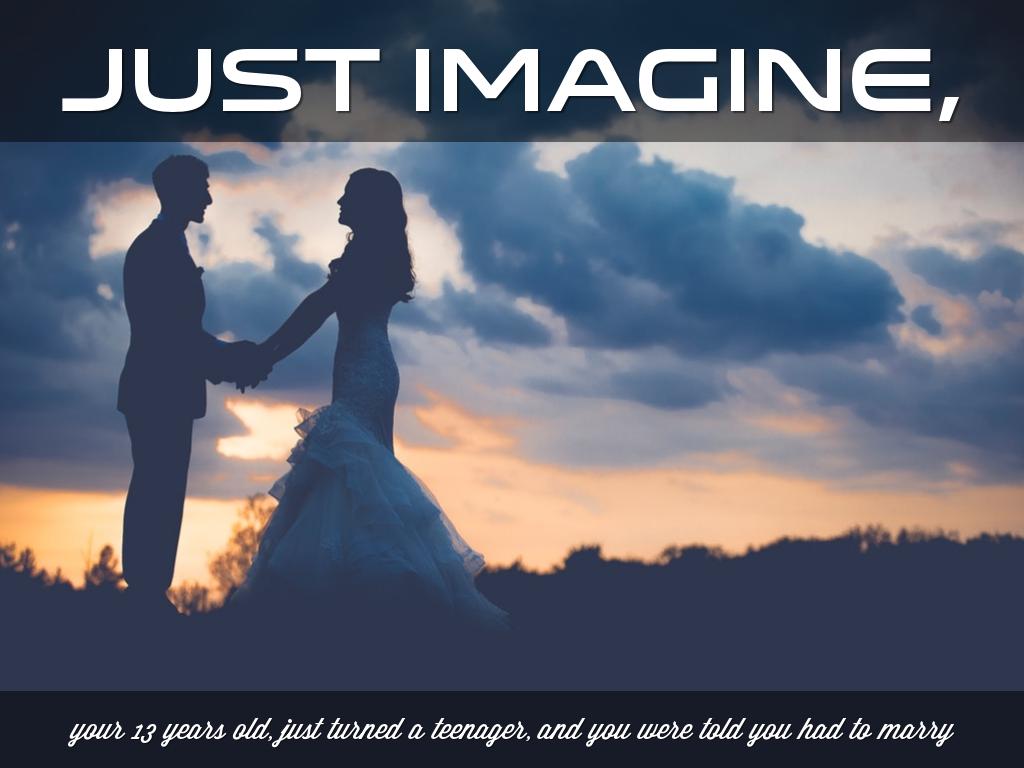 your 13 years old, just turned a teenager, and you were told you had to marry