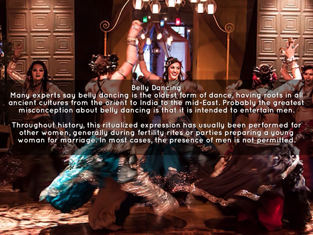 Many experts say belly dancing is the oldest form of dance, having roots in all ancient cultures from the orient to India to the mid-East. Probably the greatest misconception about belly dancing is that it is intended to entertain men.