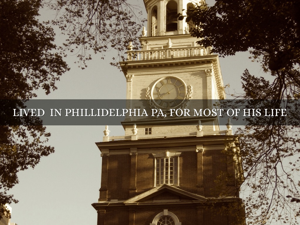 LIVED IN PHILLIDELPHIA PA, FOR MOST OF HIS LIFE