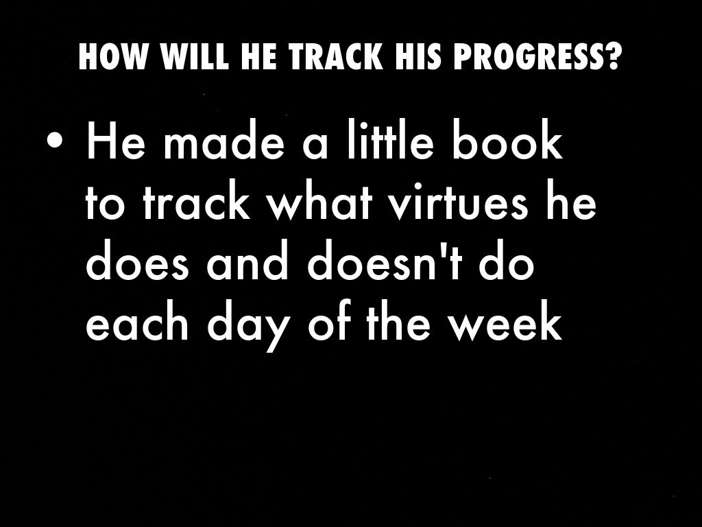 - He made a little book to track what virtues he does and doesn't do each day of the week