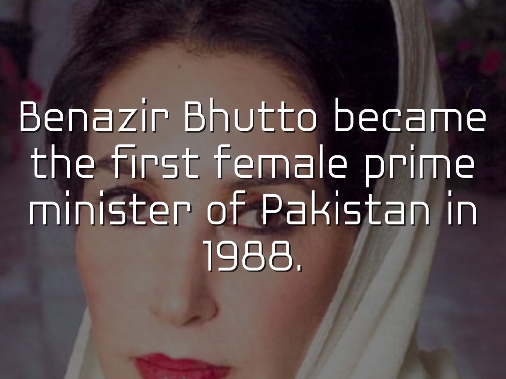 Benazir Bhutto became the first female prime minister of Pakistan in 1988.