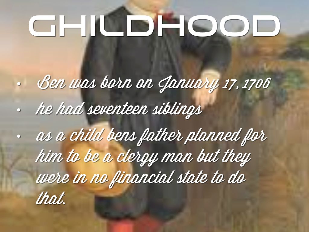 as a child bens father planned for him to be a clergy man but they were in no financial state to do that.