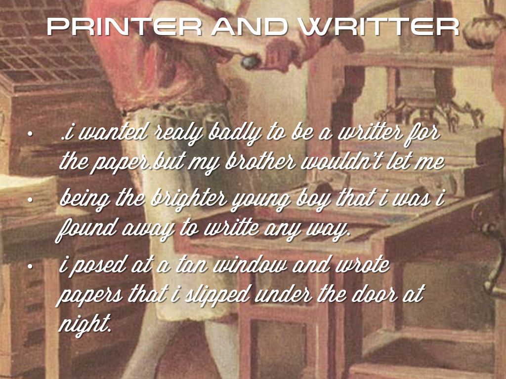 .i wanted realy badly to be a writter for the paper.but my brother wouldn't let me