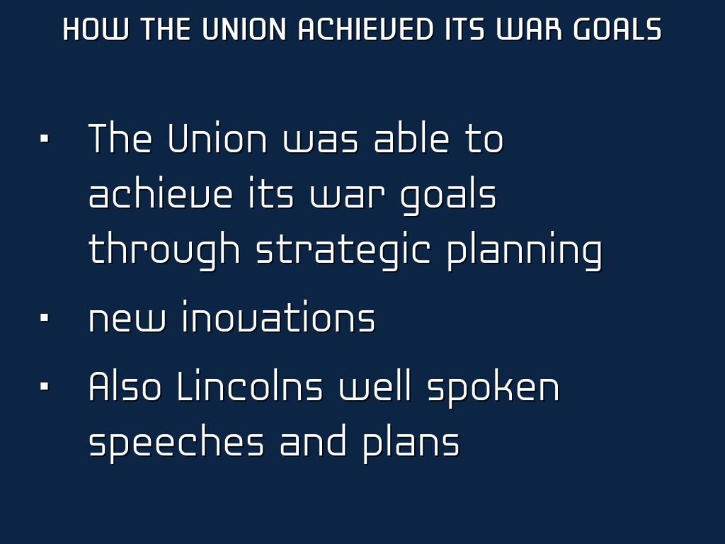 The Union was able to achieve its war goals through strategic planning