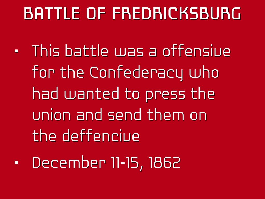 This battle was a offensive for the Confederacy who had wanted to press the union and send them on the deffencive