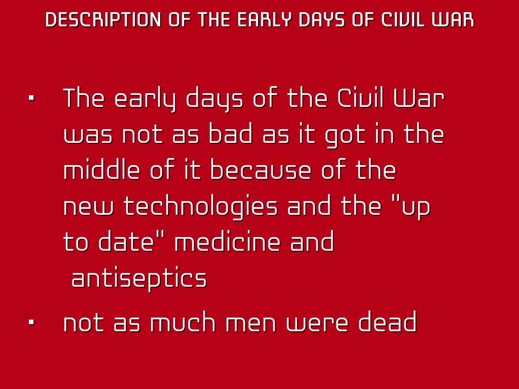 The early days of the Civil War was not as bad as it got in the middle of it because of the new technologies and the "up to date" medicine and antiseptics