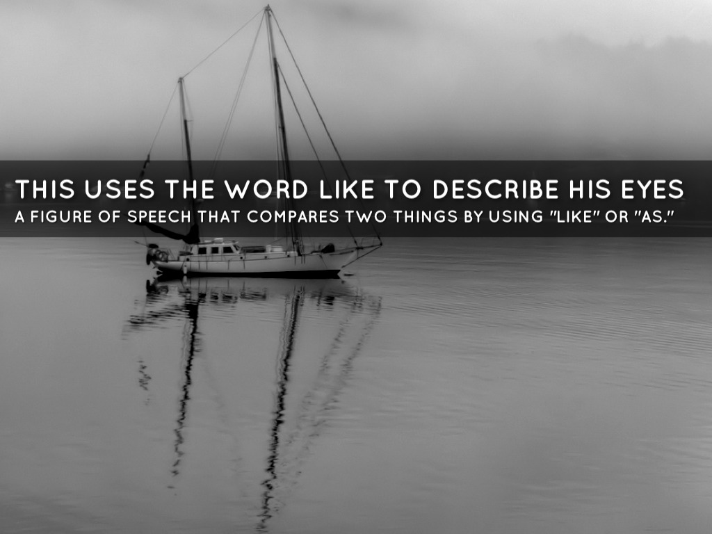 THIS USES THE WORD LIKE TO DESCRIBE HIS EYES