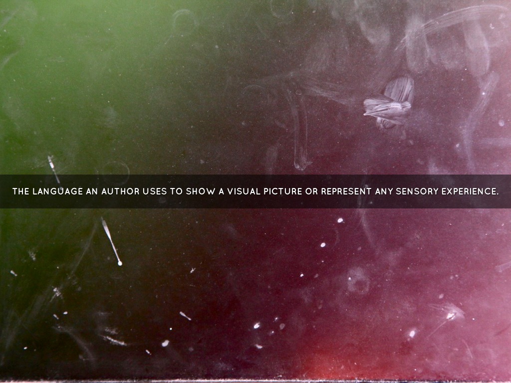THE LANGUAGE AN AUTHOR USES TO SHOW A VISUAL PICTURE OR REPRESENT ANY SENSORY EXPERIENCE.