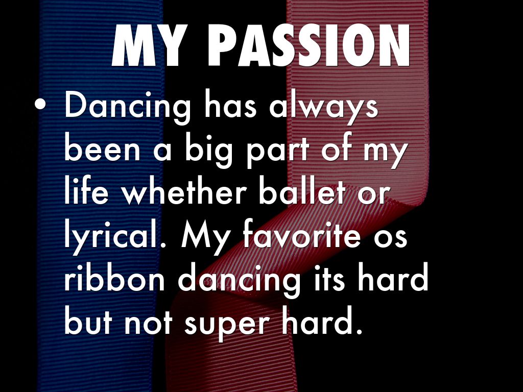 Dancing has always been a big part of my life whether ballet or lyrical. My favorite os ribbon dancing its hard but not super hard.