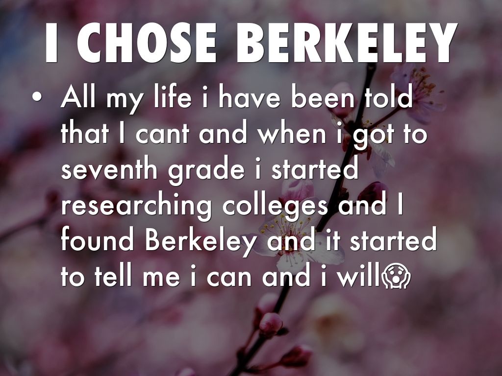 All my life i have been told that I cant and when i got to seventh grade i started researching colleges and I found Berkeley and it started to tell me i can and i will😱
