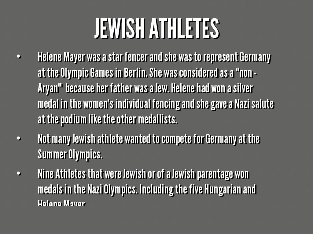 Most of the Jewish Athletes did not fully grasp at the time the extent and the purpose of the Nazi of Jews and other groups of people.