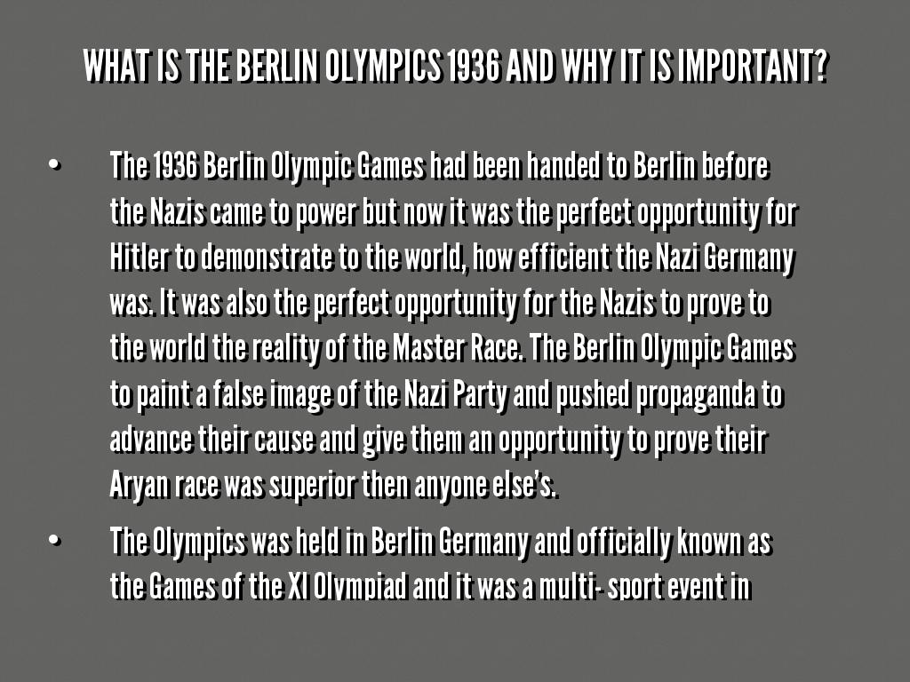What IS THE BERLIN OLYMPICS 1936 AND WHY IT IS IMPORTANT?