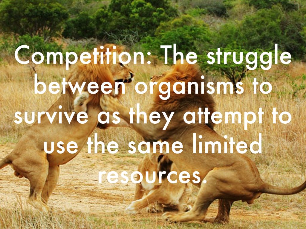 Competition: The struggle between organisms to survive as they attempt to use the same limited resources.