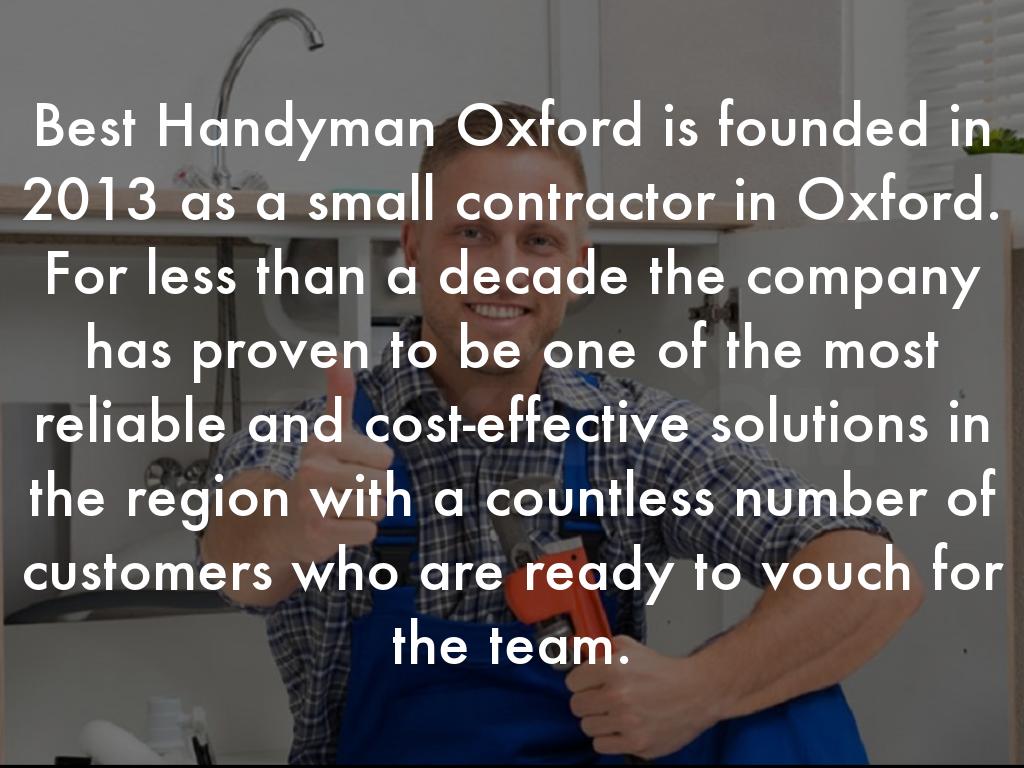 Learn more about the best solution when it comes to a handyman in Oxford and make sure that this should be your first idea when it comes to reliable and cost-effective home repairs & improvement. Best Handyman Oxford is waiting for your calls 24/7 so pick the most convenient time for your schedule and let's talk about the improvement of your domestic or commercial property in Oxfordshire.