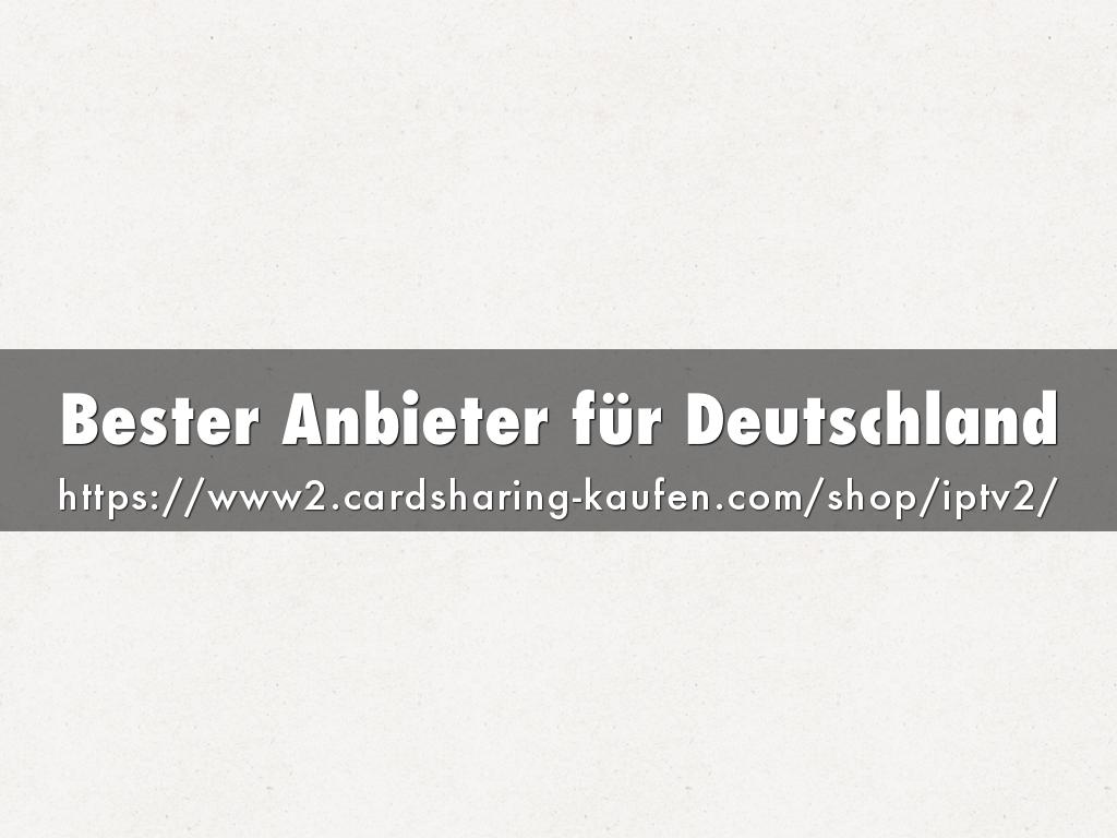 Du suchst den besten iptv anbieter ? es gibt unzählige iptv anbieter, vergiss die 10 besten iptv anbieter listen und sonstigen quatsch, qualität kostet etwas geld. wenn du iptv kaufen möchtest kann ich nur https://www2.cardsharing-kaufen.com/shop/iptv2/ empfehlen