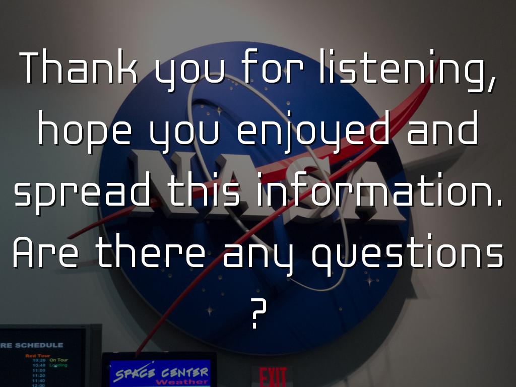 Thank you for listening, hope you enjoyed and spread this information. Are there any questions ?