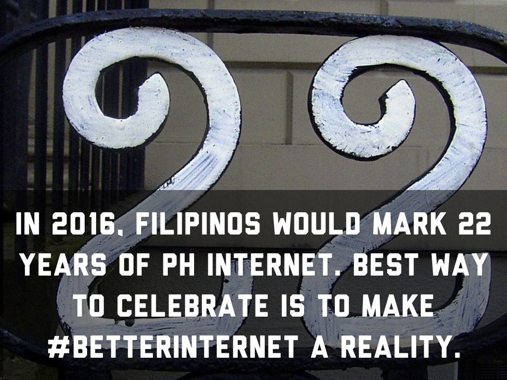 In 2016, Filipinos would mark 22 years of PH internet. Best way to celebrate is to make #BETTERINTERNET a reality.