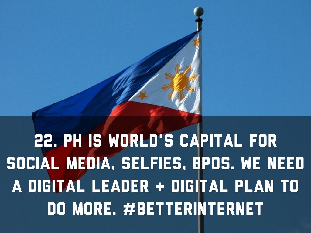 22. PH is world's capital for social media, selfies, BPOs. We need a Digital Leader & Digital Plan to do more. #BETTERINTERNET