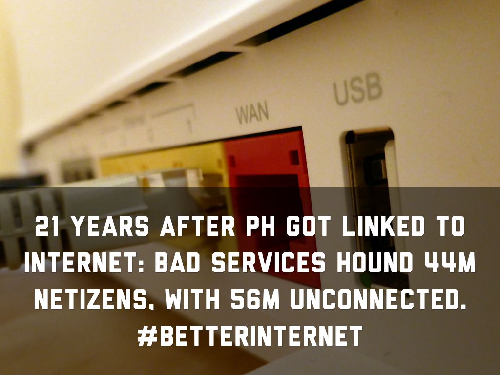 21 years after PH got linked to internet: Bad services hound 44M netizens, with 56M unconnected. #BETTERINTERNET