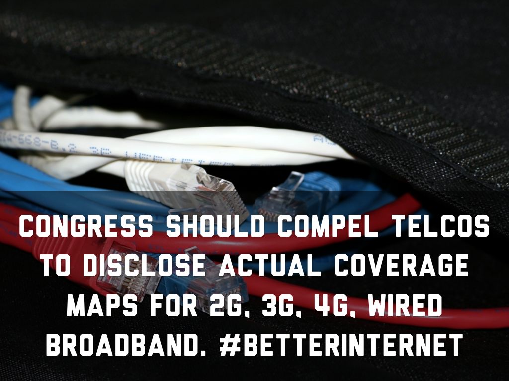 Congress should compel telcos to disclose actual coverage maps for 2G, 3G, 4G, wired broadband. #BETTERINTERNET