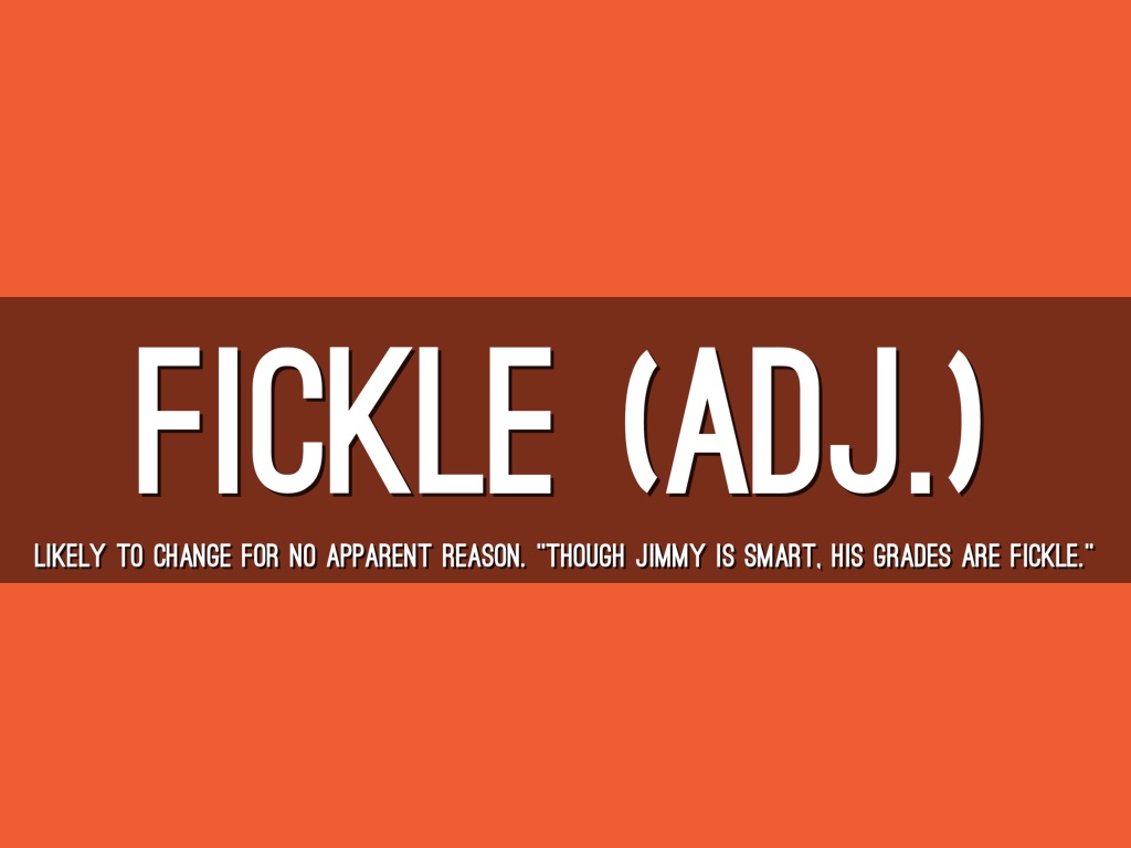 LIKELY TO CHANGE FOR NO APPARENT REASON. "THOUGH JIMMY IS SMART, HIS GRADES ARE FICKLE."