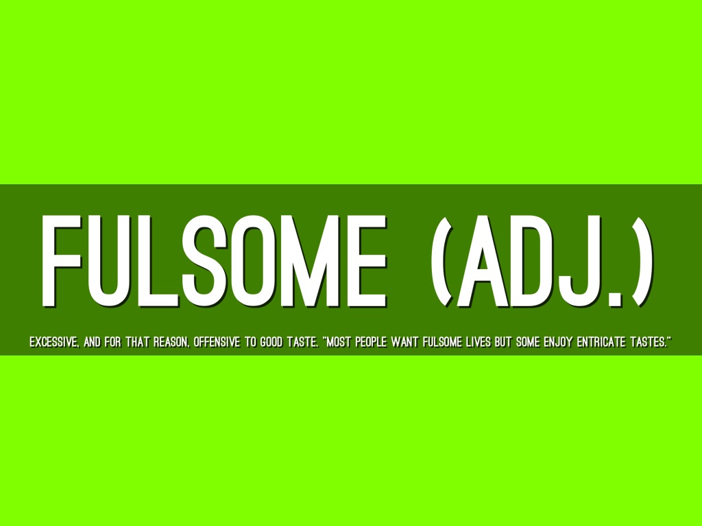 EXCESSIVE, AND FOR THAT REASON, OFFENSIVE TO GOOD TASTE. "MOST PEOPLE WANT FULSOME LIVES BUT SOME ENJOY ENTRICATE TASTES."