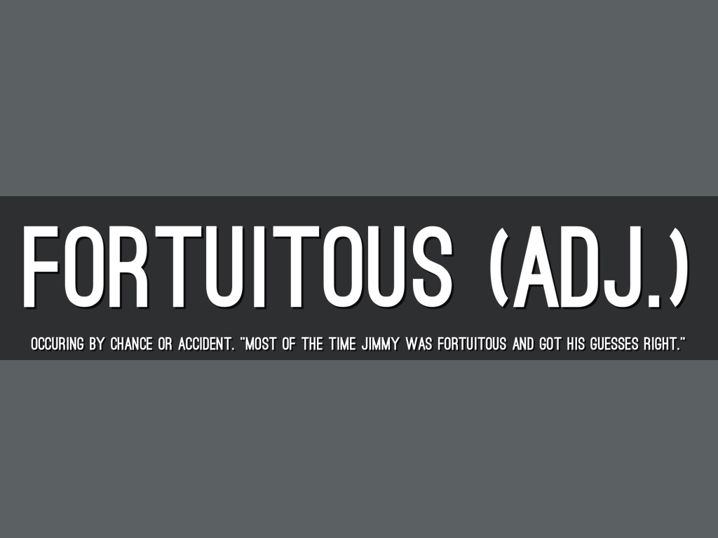 OCCURING BY CHANCE OR ACCIDENT. "MOST OF THE TIME JIMMY WAS FORTUITOUS AND GOT HIS GUESSES RIGHT."