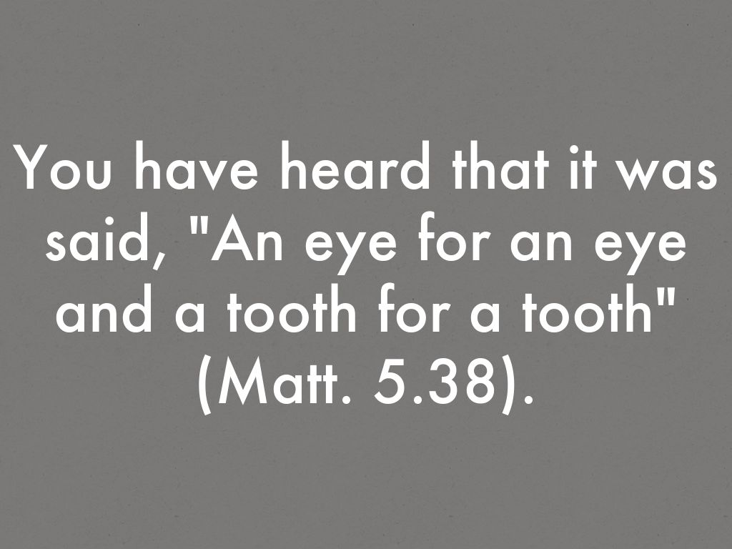 You have heard that it was said, "An eye for an eye and a tooth for a tooth" (Matt. 5.38).