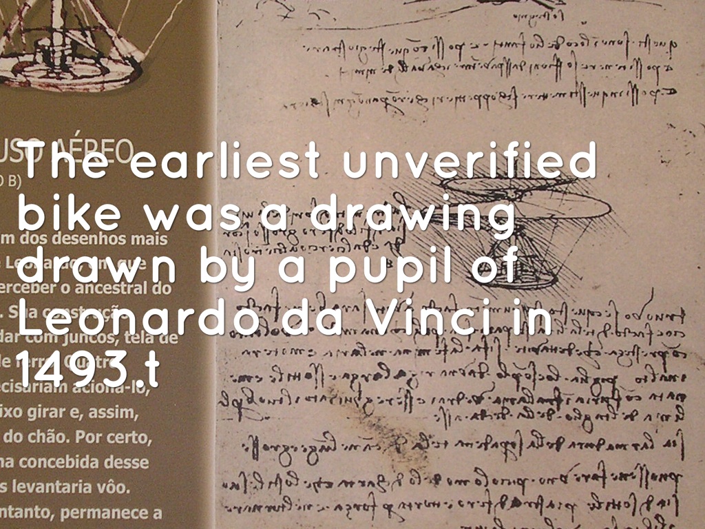 The earliest unverified bike was a drawing drawn by a pupil of Leonardo da Vinci in 1493.t