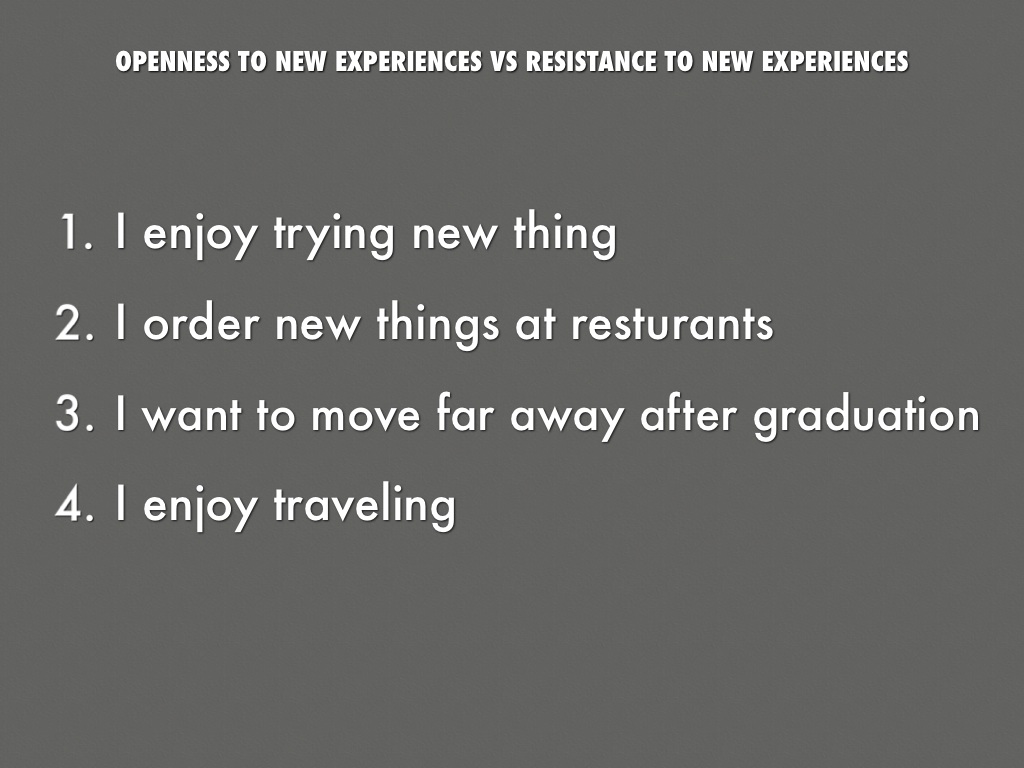 OPENNESS TO NEW EXPERIENCES VS RESISTANCE TO NEW EXPERIENCES