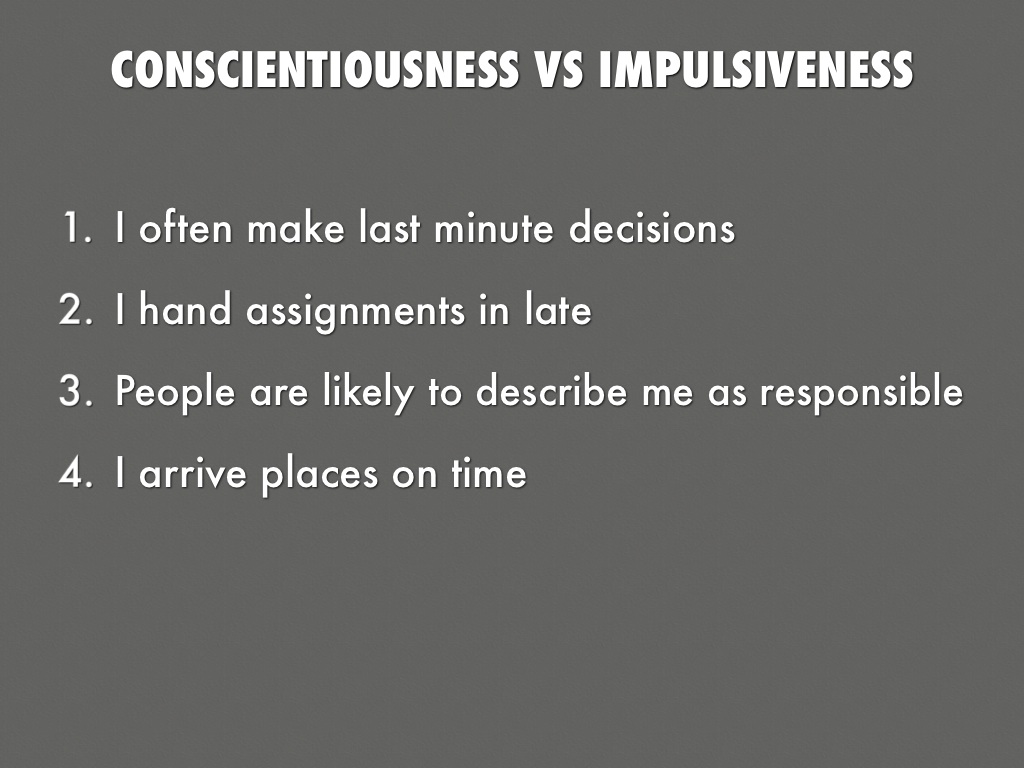 CONSCIENTIOUSNESS VS IMPULSIVENESS