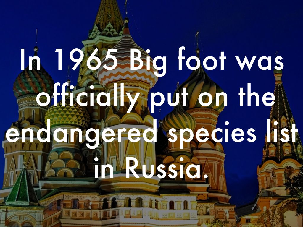 In 1965 Big foot was officially put on the endangered species list in Russia.