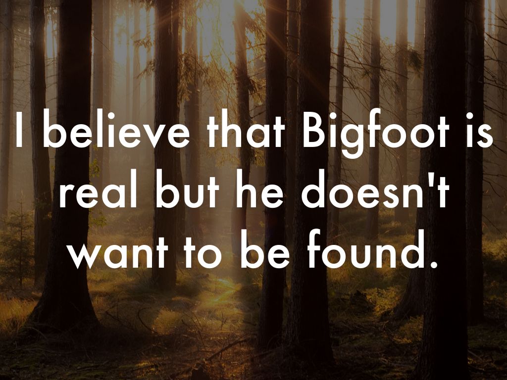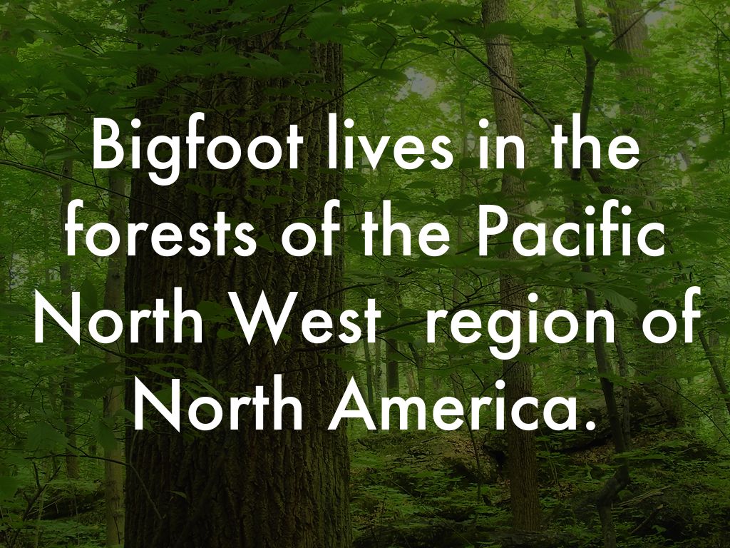 Bigfoot lives in the forests of the Pacific North West region of North America.
