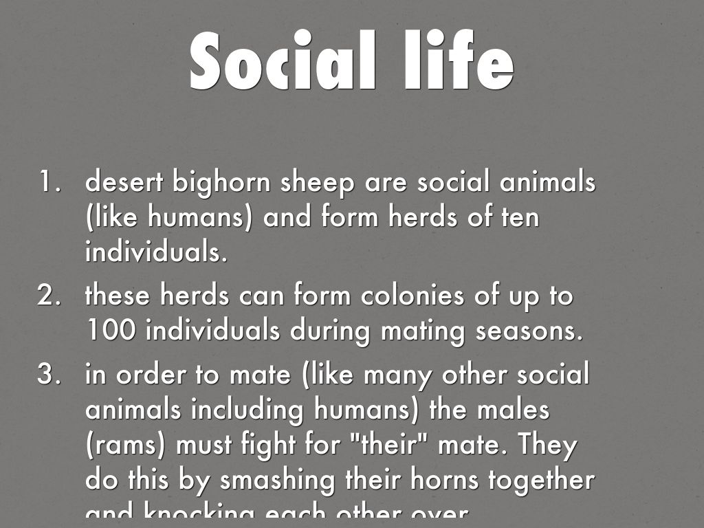 desert bighorn sheep are social animals (like humans) and form herds of ten individuals.