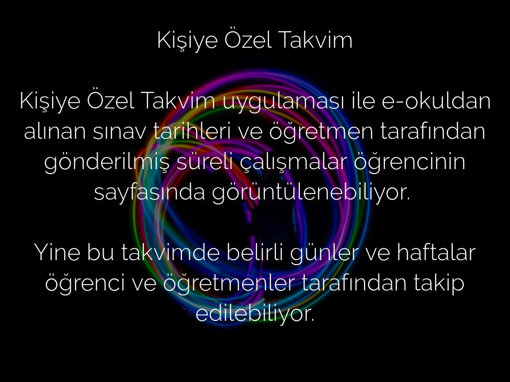 Kişiye Özel Takvim uygulaması ile e-okuldan alınan sınav tarihleri ve öğretmen tarafından gönderilmiş süreli çalışmalar öğrencinin sayfasında görüntülenebiliyor. ​