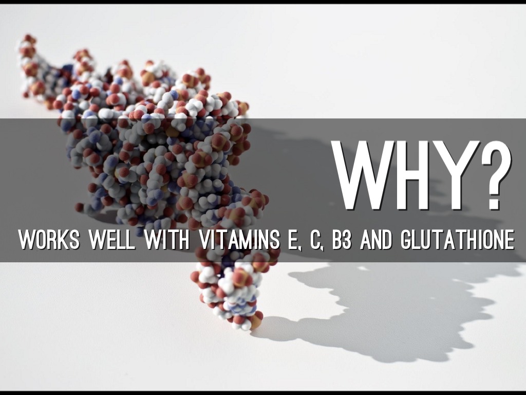 WORKS WELL WITH VITAMINS E, C, b3 AND GLUTATHIONE