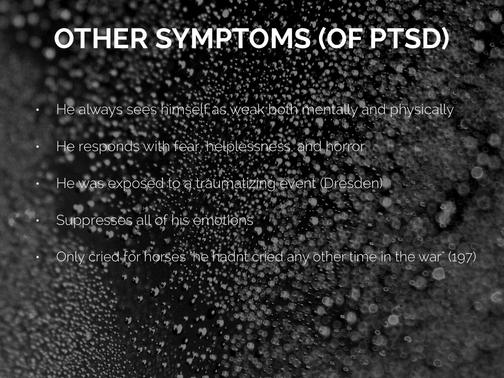 Only cried for horses "he hadnt cried any other time in the war" (197)