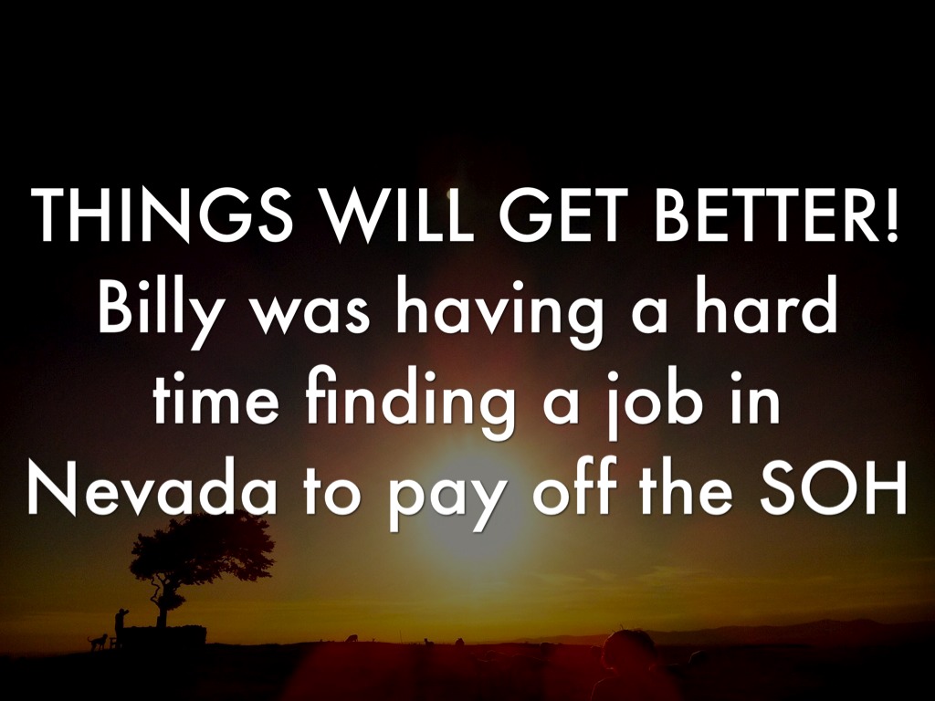 Billy was having a hard time finding a job in Nevada to pay off the SOH