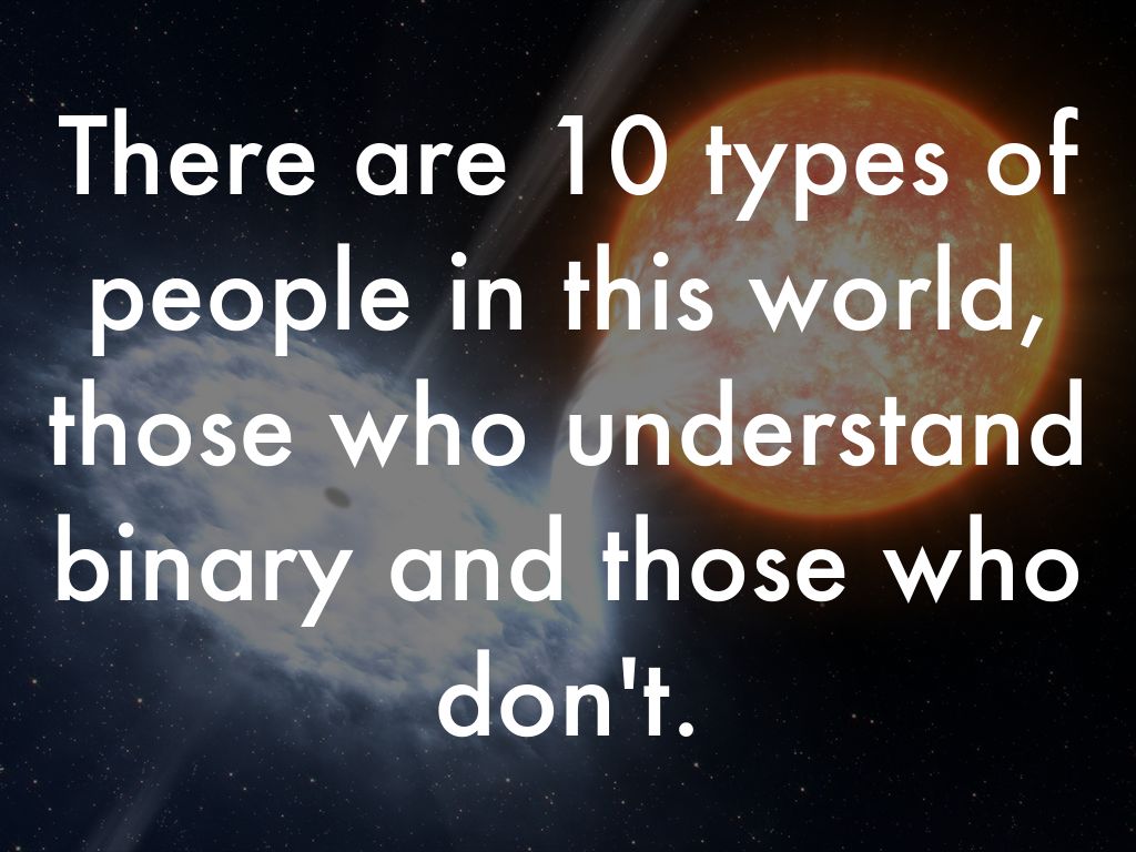 There are 10 types of people in this world, those who understand binary and those who don't.